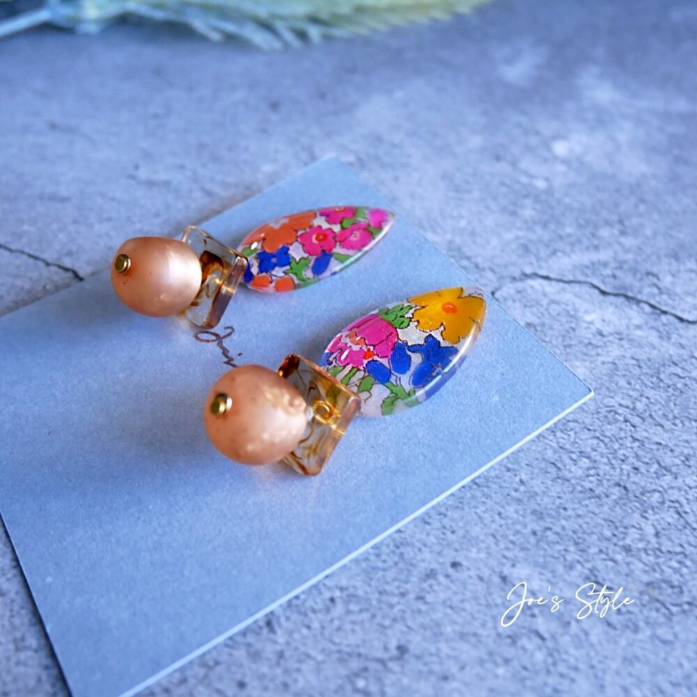 お花柄のリバティファブリックを閉じ込めた美しいドロップガラス